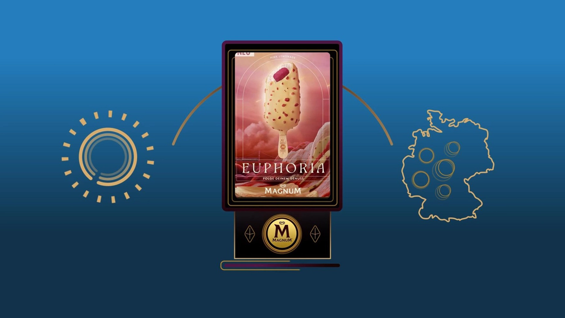 Magnum, together with PHD Media, developed a targeted video and (Instore-)DOOH campaign, delivered exclusively in regions with sunny weather and low demand. At the core was an innovative custom KPI combining sales forecasts based on Rewe sales data, weather forecasts, and media efficiency to pinpoint regions with the greatest sales potential.